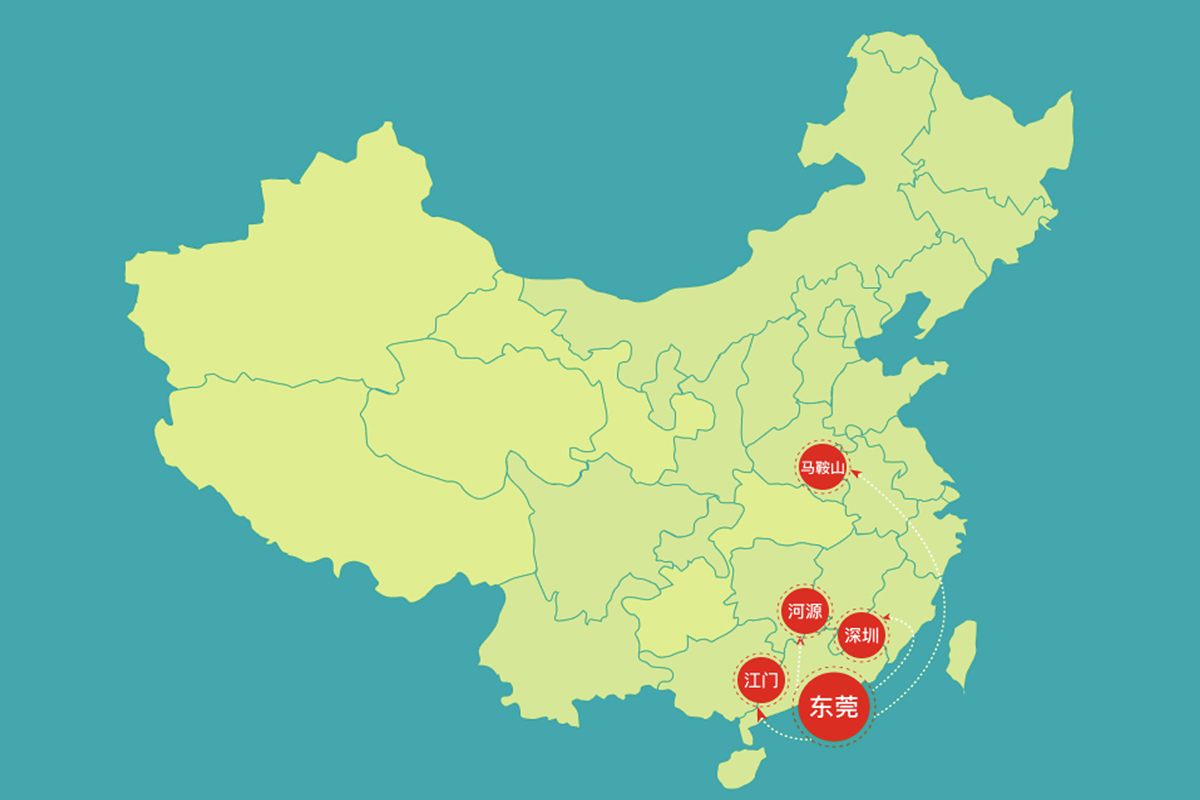 集團(tuán)擁有東莞、江門、河源、深圳、馬鞍山等5個生產(chǎn)基地,公司的生產(chǎn)、倉庫、辦公及宿舍等占地面積超過200畝,從業(yè)人員達(dá)1000余人。
